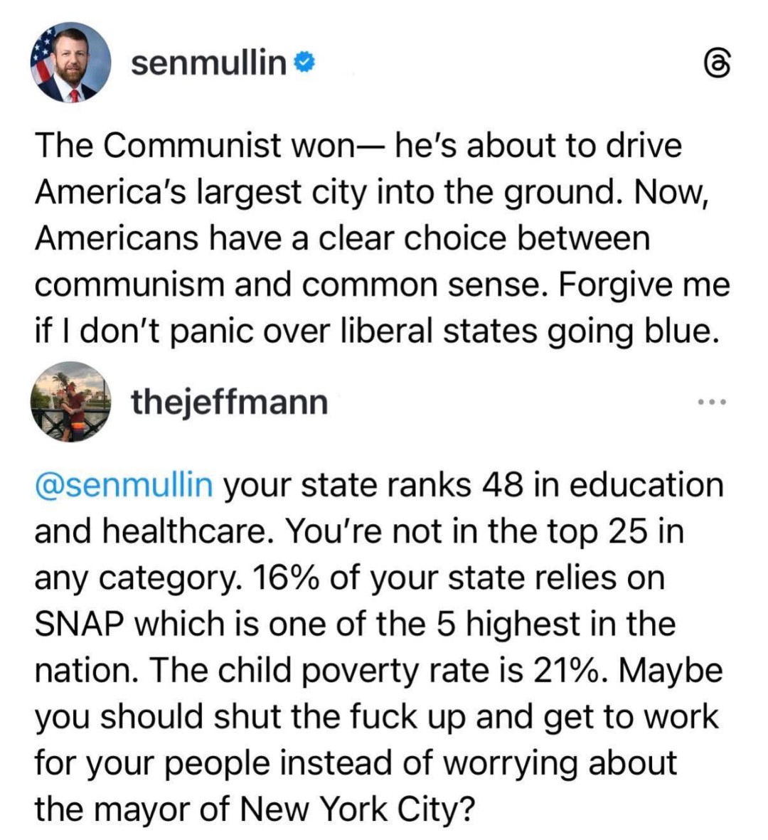 ByteOnBikes@discuss.online to AntiTrumpAlliance@lemmy.worldEnglish · 5 months agoOklahoma Senator Mullin is worrieddiscuss.onlineimagemessage-square3fedilinkarrow-up11arrow-down10