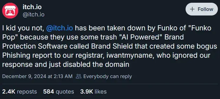 A takedown request was issued on false grounds.