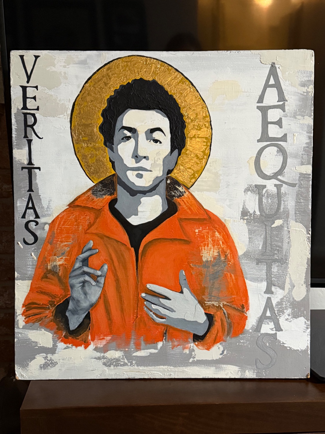 Yea it shows up better in person but I did do that on purpose. I did a lot of weird stuff with this piece. You can’t tell from the picture but the gold leafing on the halo gives a glowing effect in some lighting